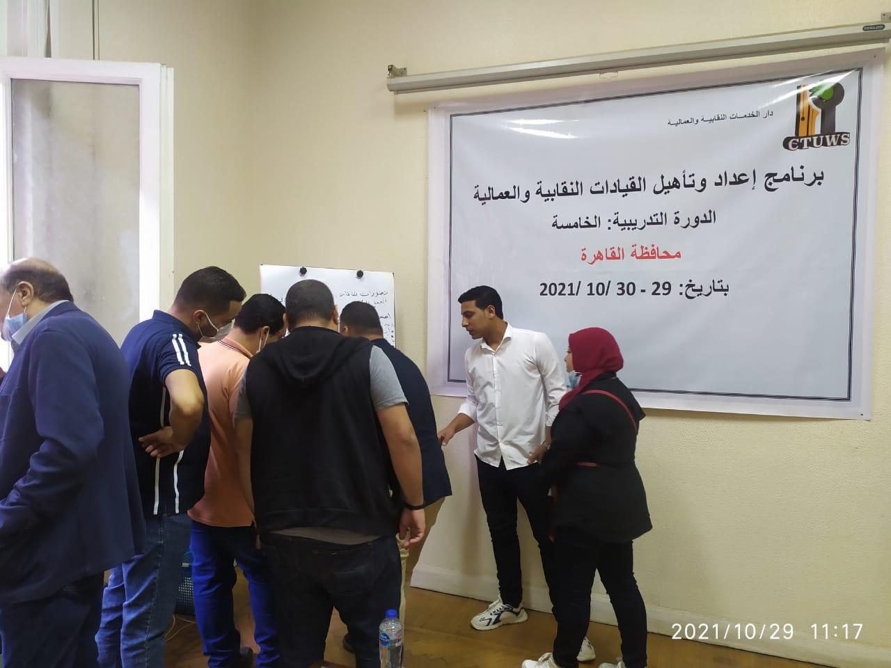 تنطلق اليوم الجمعة الموافق 29 /10/2021 فاعليات الدورة التدريبية الخامسة في إطار برنامج "إعداد قيادات نقابية وعمالية". والذي تنظمها دار الخدمات النقابية والعمالية.. يشارك بالدورة" 24 قيادة نقابية وعمالية ممثلين لنقابات " الضرائب / العقارية   / الاتصالات / السياحيين /الصيادين / نايل لينين جروب / ليوني وايرينج سيستم / غزل المحلة \النيل للمواد العازلة بيتونيل\ العاملين بالإسعاف\ العاملين بالقصر العيني الفر نساوي \موندليزا ايجيبت “من محافظات "القاهرة الكبرى /الإسكندرية / المحلة \الدقهلية /بورسعيد / السويس “