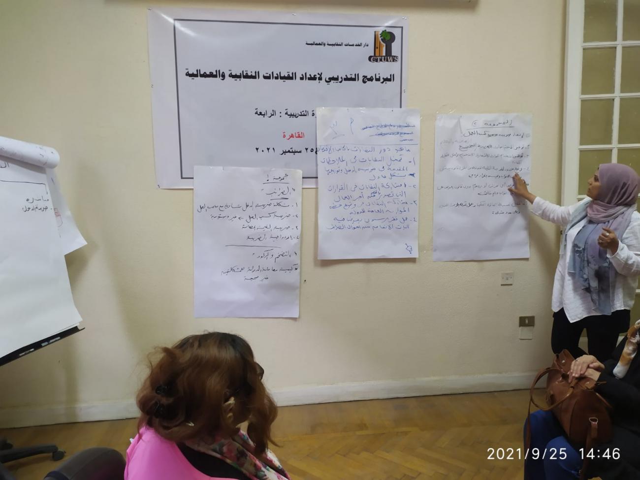نظمت دار الخدمات النقابية والعمالية الدورة التدريبية الرابعة   في  إطار برنامج إعداد قيادات نقابية وعمالية يوم الجمعة والسبت الموافق 24 ـ 25 /9 /2021 "  بمحافظة القاهرة " شارك  بالدورة"  عدد من القيادات النقابية والعمالية  " ممثلين لنقابات " الضرائب / العقارية   / الاتصالات / السياحيين /الصيادين / نايل لينين جروب / ليوني وايرينج سيستم  / غزل المحلة \ النيل للمواد العازلة بيتونيل \ العاملين بالإسعاف\ العاملين بالقصر العيني الفر نساوي \موندليزا ايجيبت "  من محافظات "القاهرة  الكبرى /الإسكندرية / المحلة \الدقهلية  /بورسعيد / السويس  "